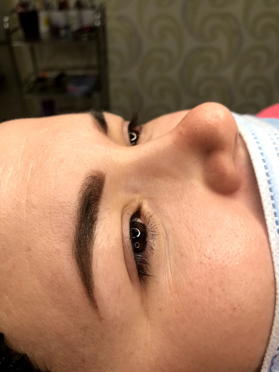 Во время процедуры наносится кремообразная местная анестезия первичная и вторичная — выщипывать брови намного больнее, чем делать перманент.