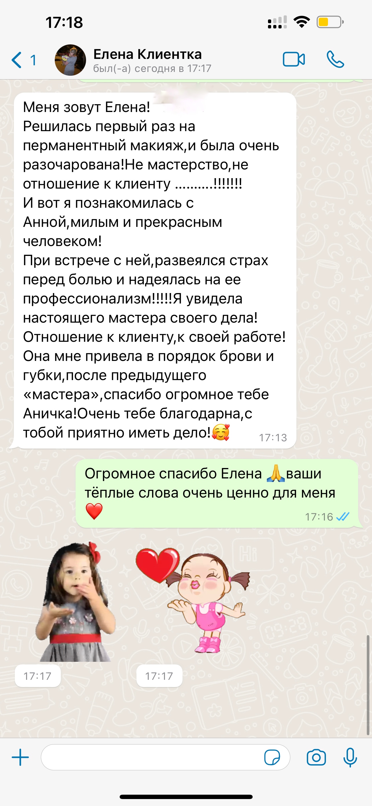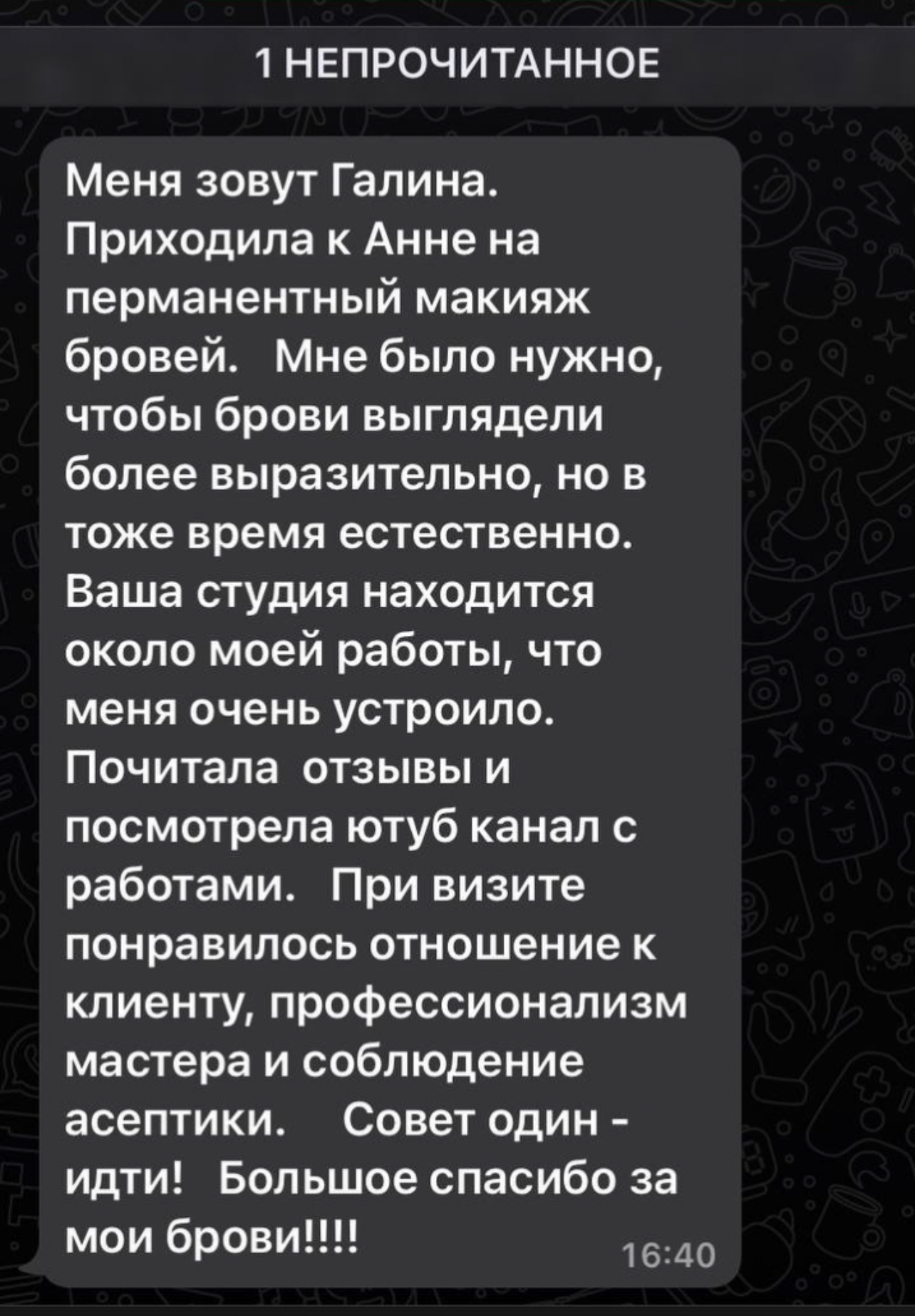 Я гарантирую не только идеальный образ на 1,5 года, но и отличное настроение от визита и приятных подарков.