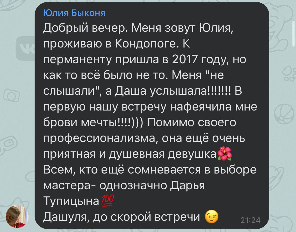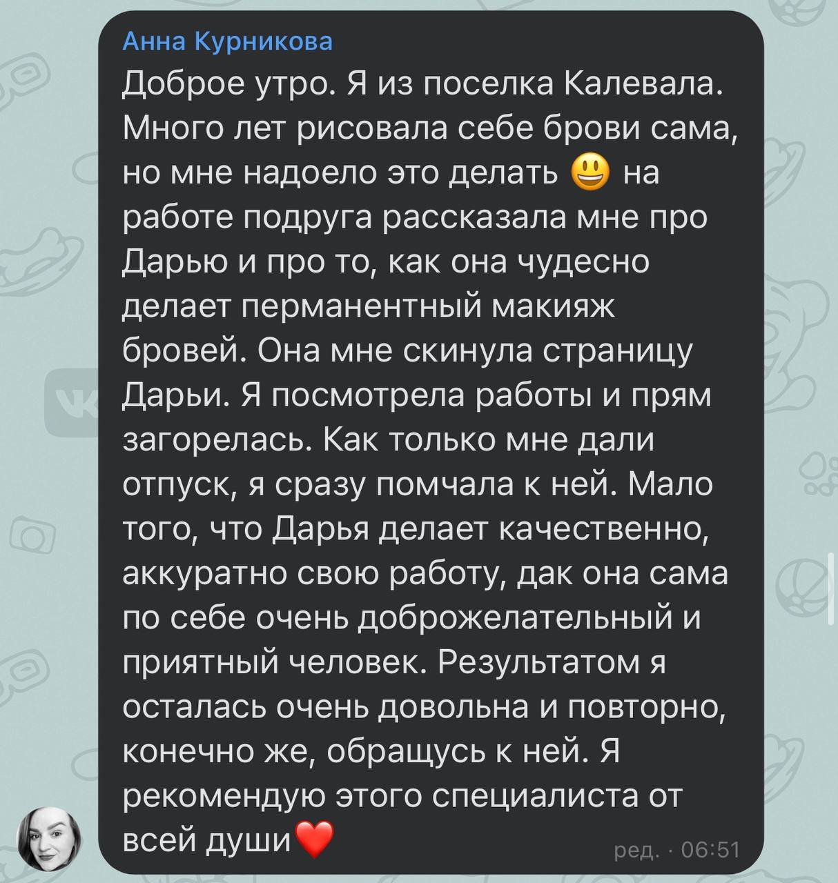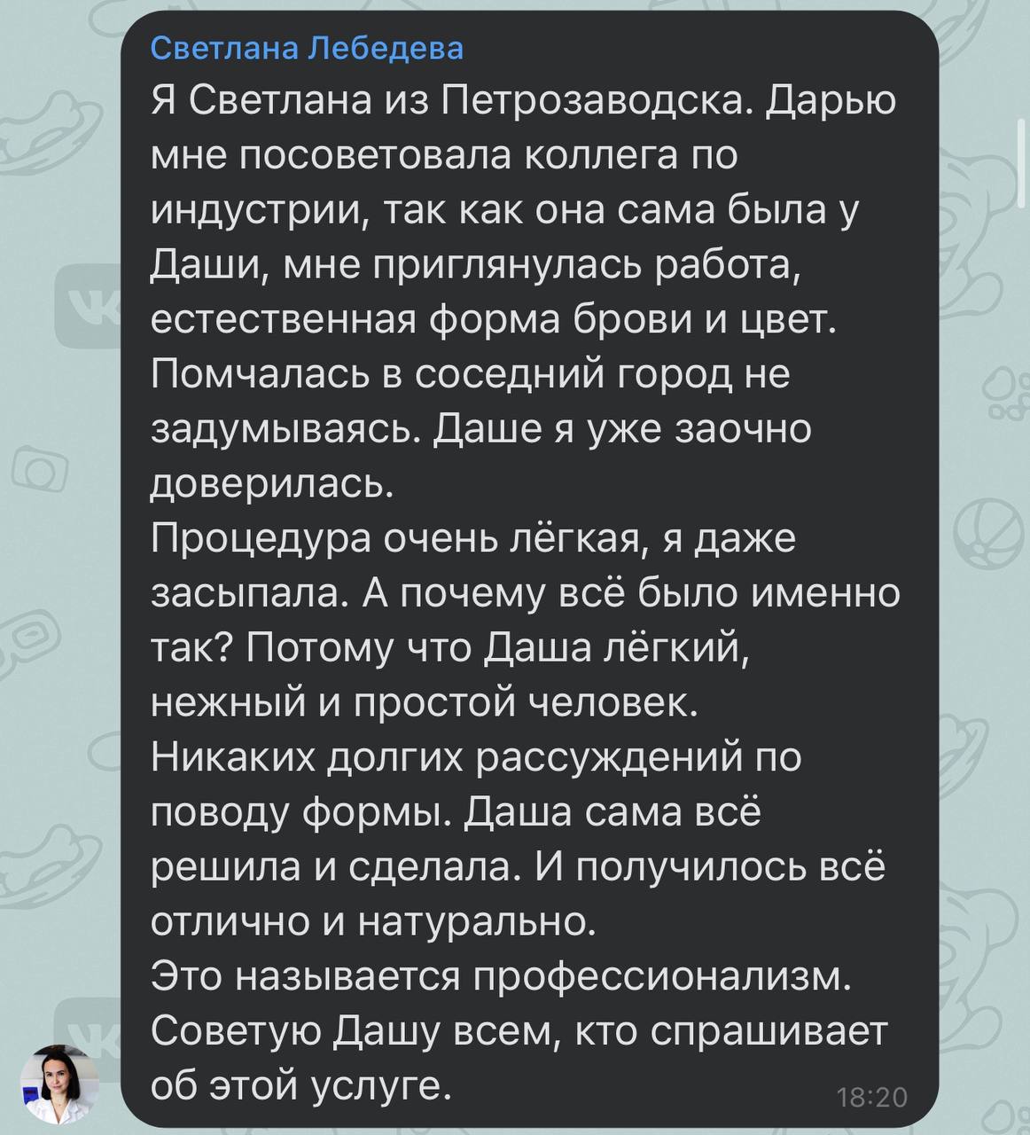 Я отталкиваюсь от природной формы, чтобы брови и губы смотрелись гармонично. 97% девушек рекомендуют студию друзьям.