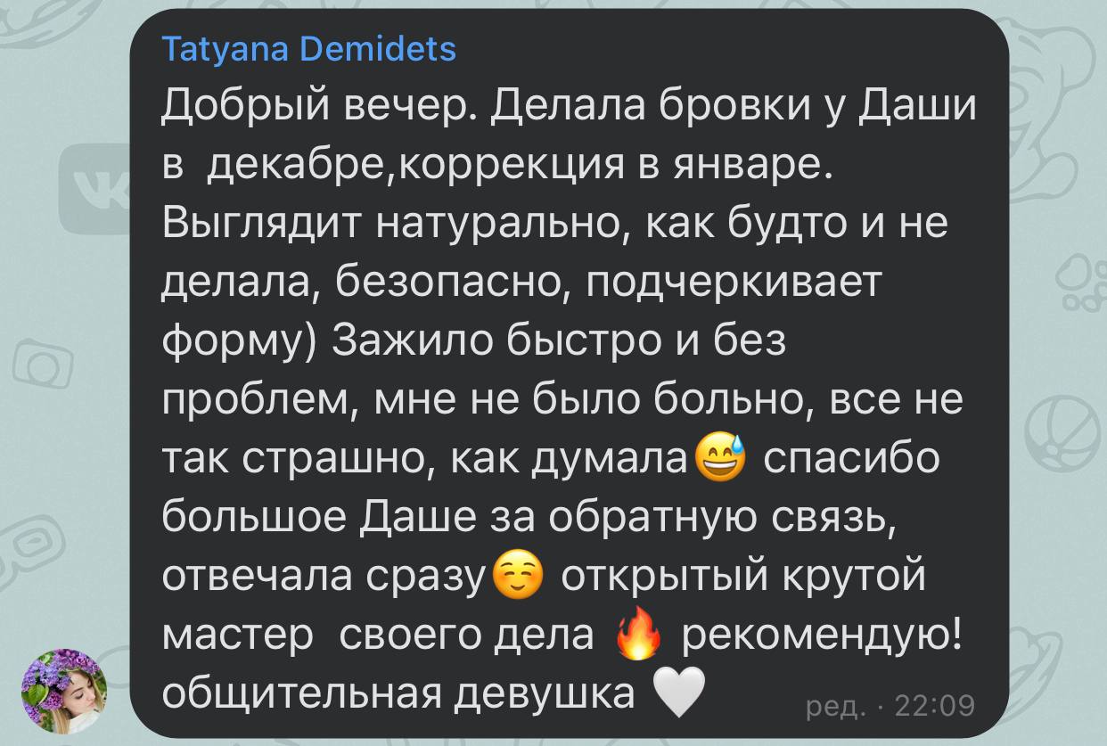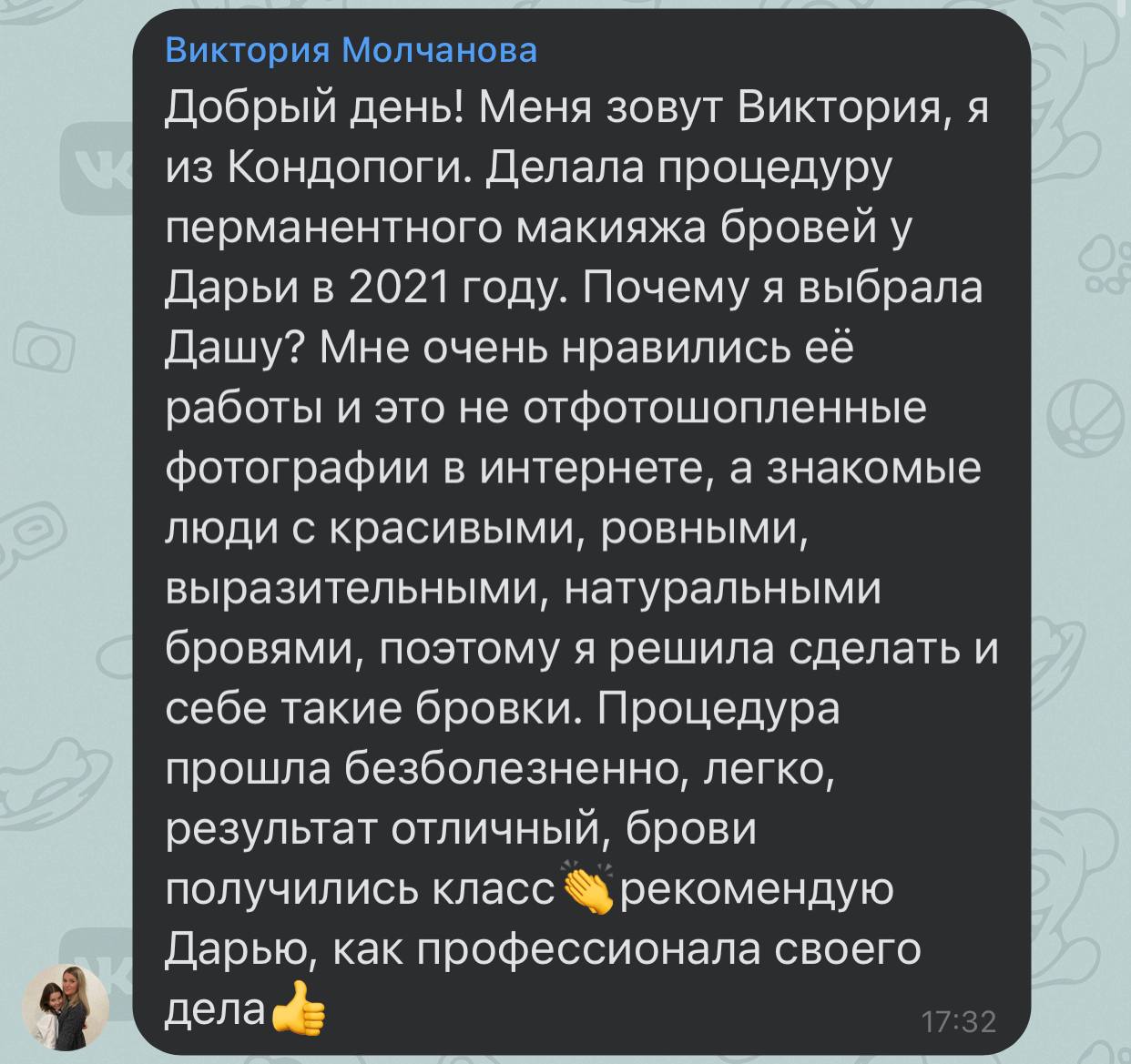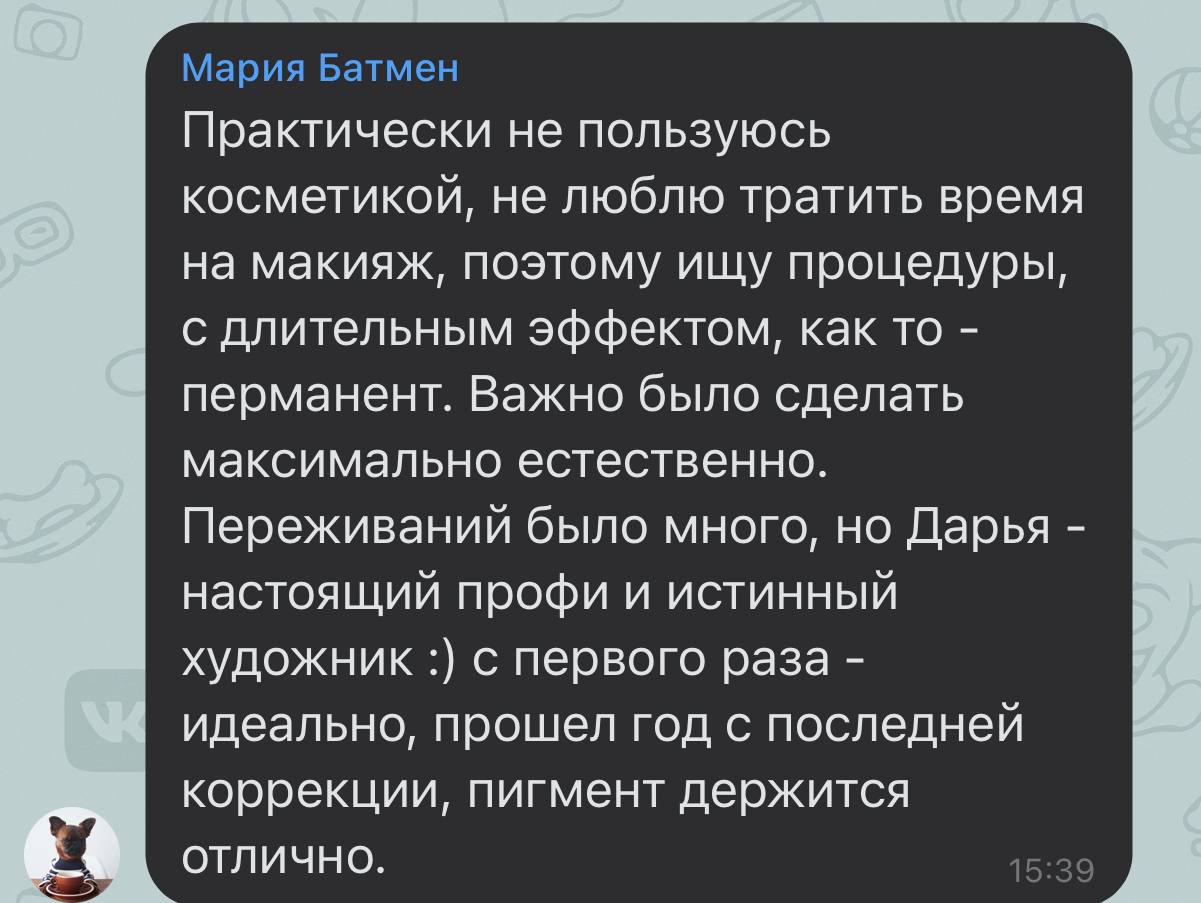 Я отталкиваюсь от природной формы, чтобы брови и губы смотрелись гармонично. 97% девушек рекомендуют студию друзьям.