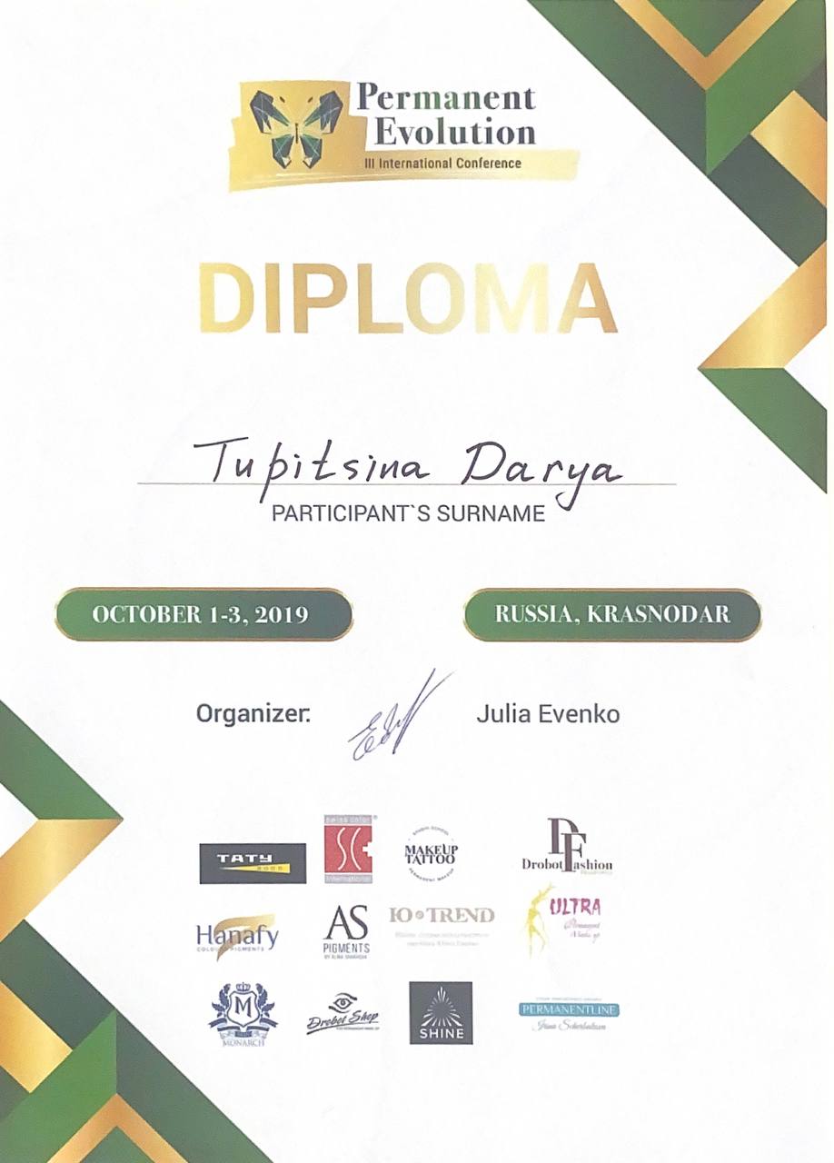 Сделала более 4000 процедур перманентного макияжа. Победитель чемпионата по оформлению бровей  «Колибри» (Москва, 2018)