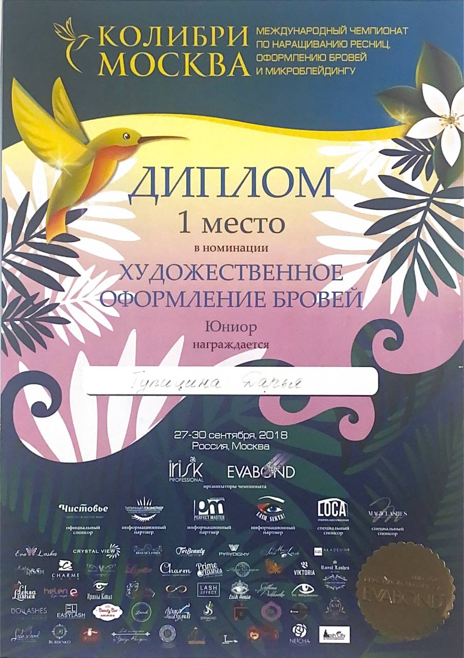 Победитель чемпионата по оформлению бровей «Колибри» (Москва, 2018). Создатель студии красоты Pushka.