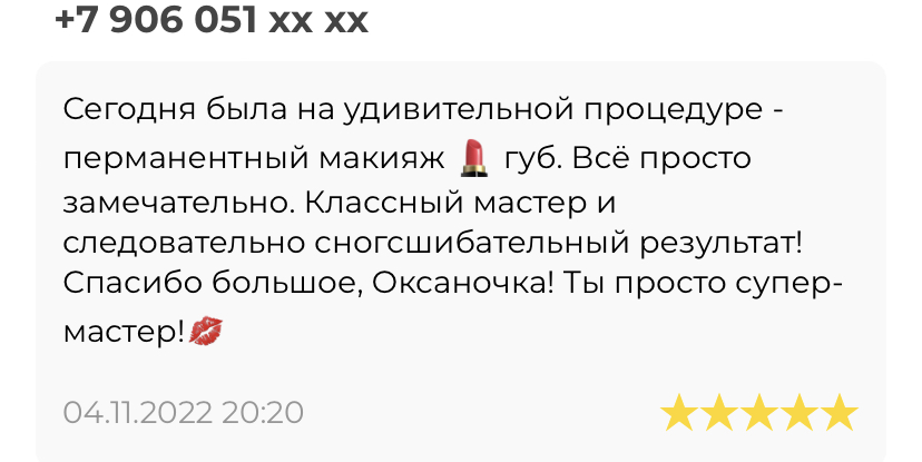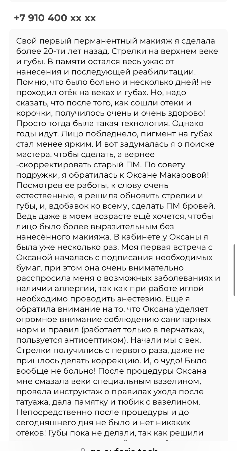 Сделала более 3000 процедур перманентного макияжа с 2009 года, работаю в техниках любой сложности: "пудровое напыление", "волоски"