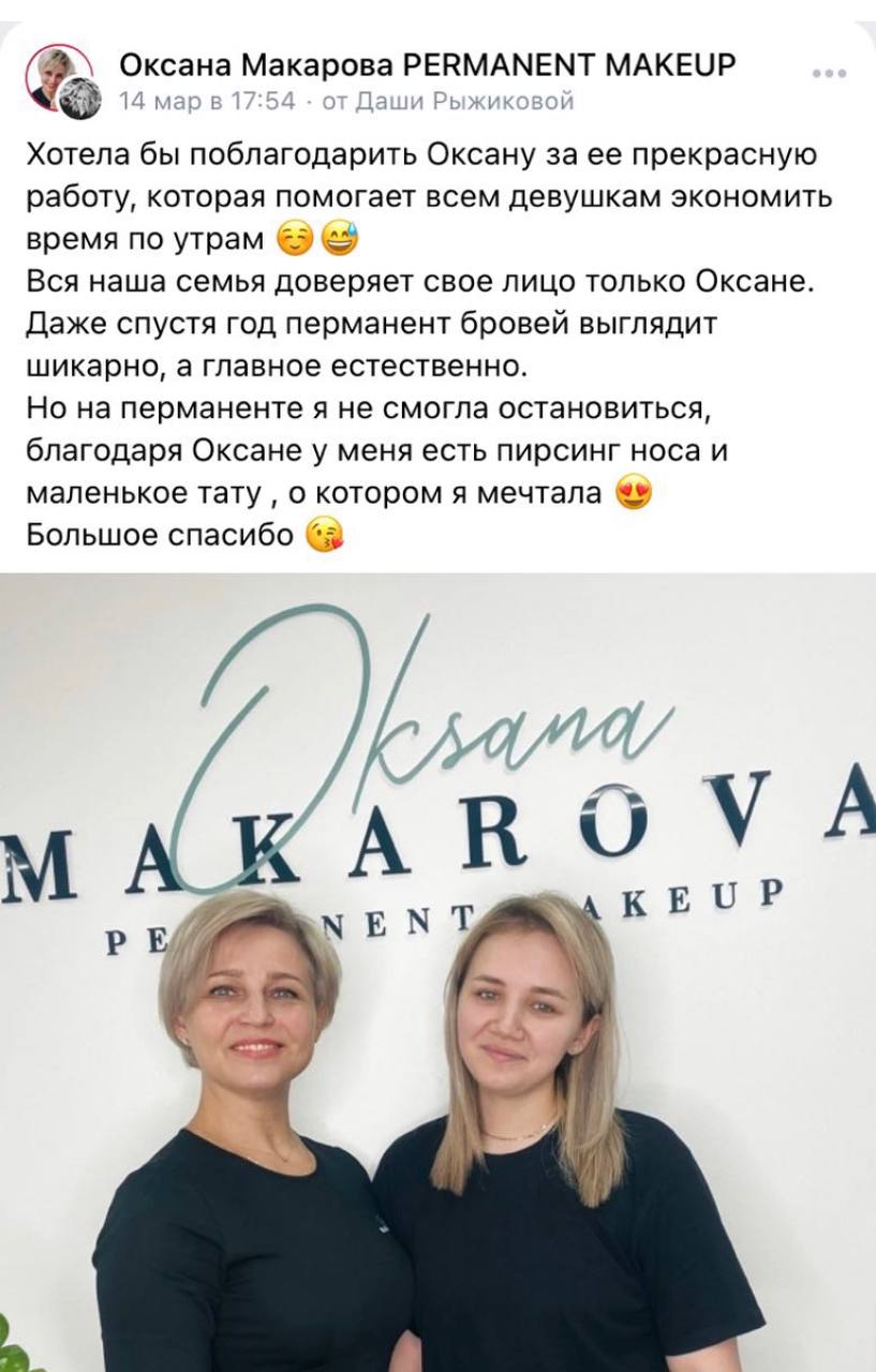 Оксана Макарова выслушает Ваши пожелания, изучит особенности кожи и даст рекомендации по форме и оттенку перманентного макияжа.