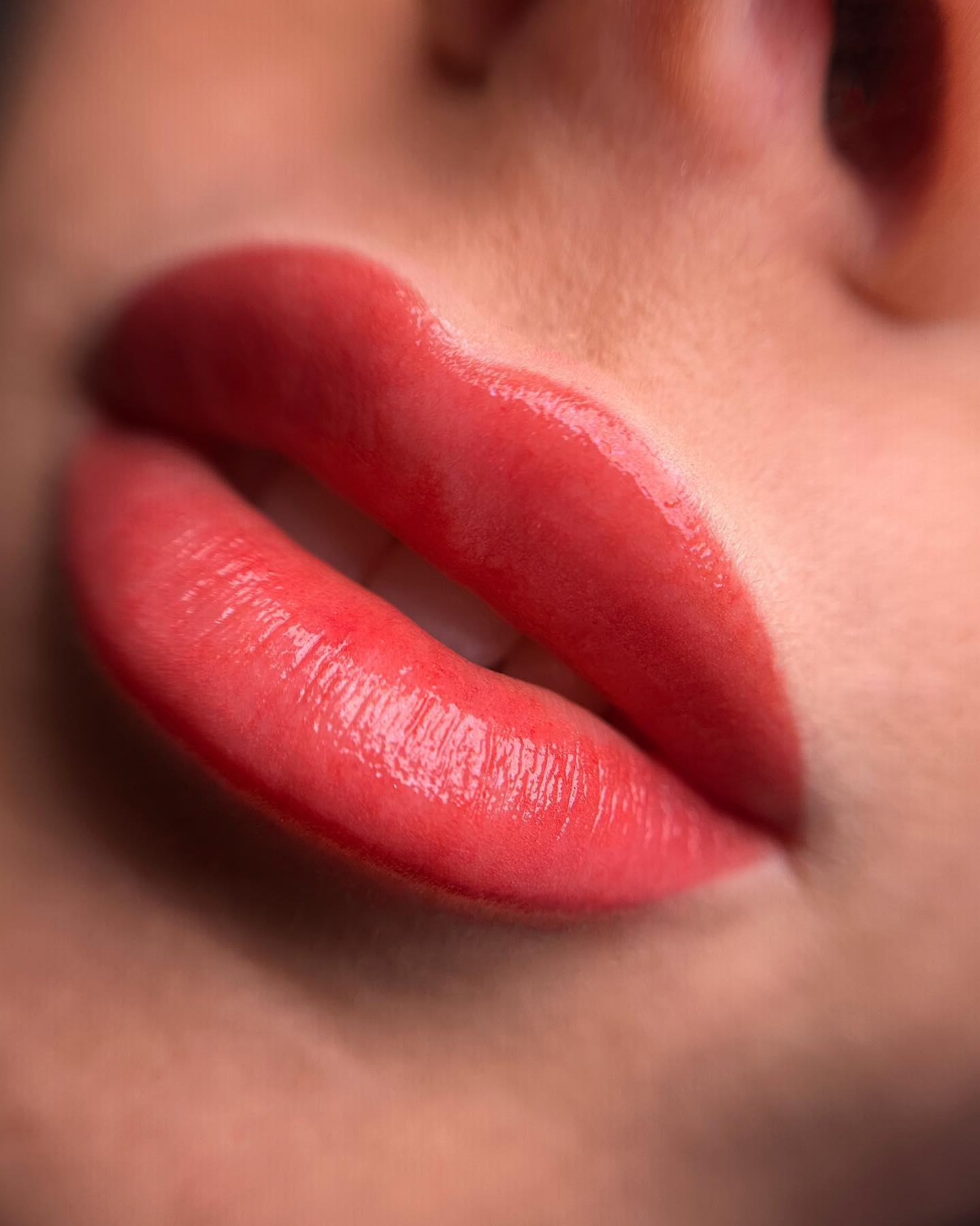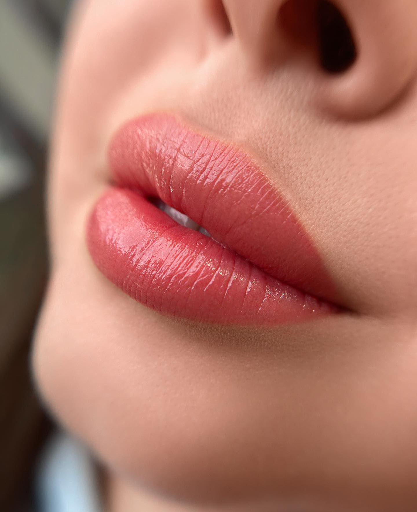 Опыт и идеальное видение формы позволяет немного выходить за красную кайму губ с целью скорректировать асимметрию, но все зависит от исходных природных данных