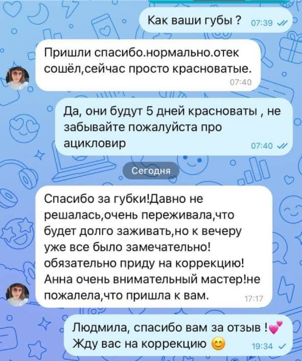 По правилам, коррекция выполняется в течение 30−60 дней, все зависит от регенерации кожи и на это влияет возраст. Поэтому с каждой красоткой мы определяем этот срок индивидуально.