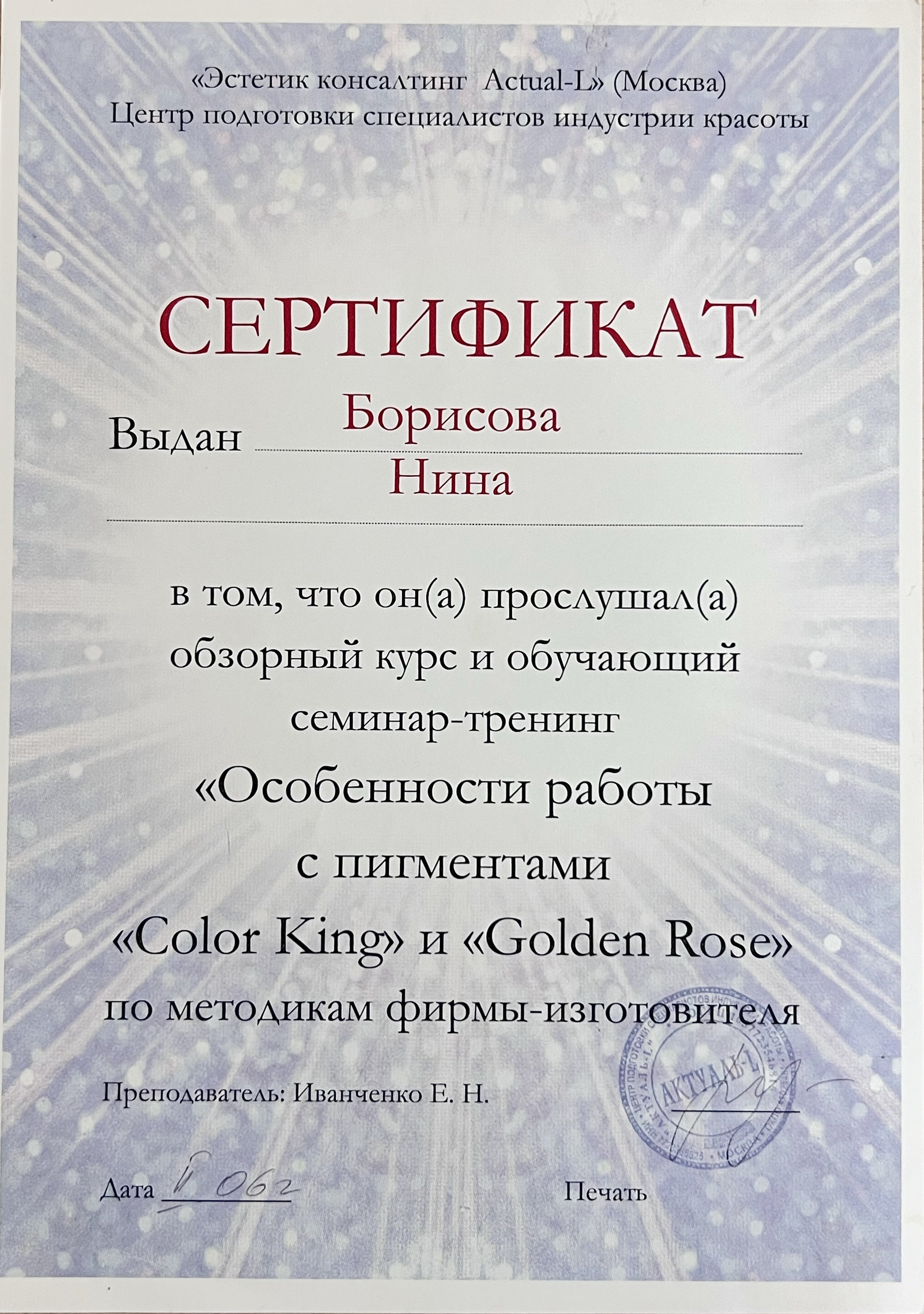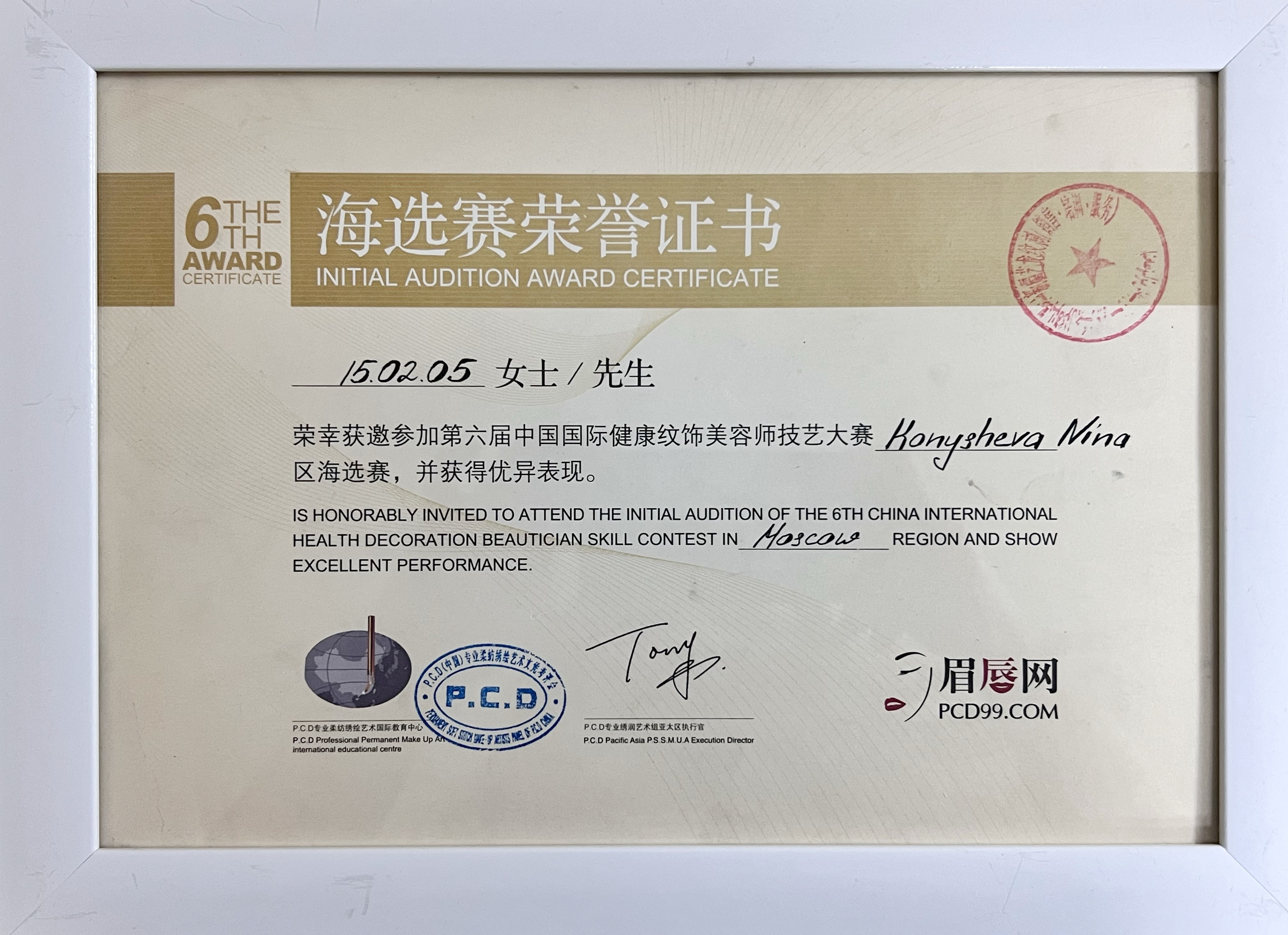 • Школа перманентного макияжа P.C.D. (г. Пекин, КНР, 2005 г.).