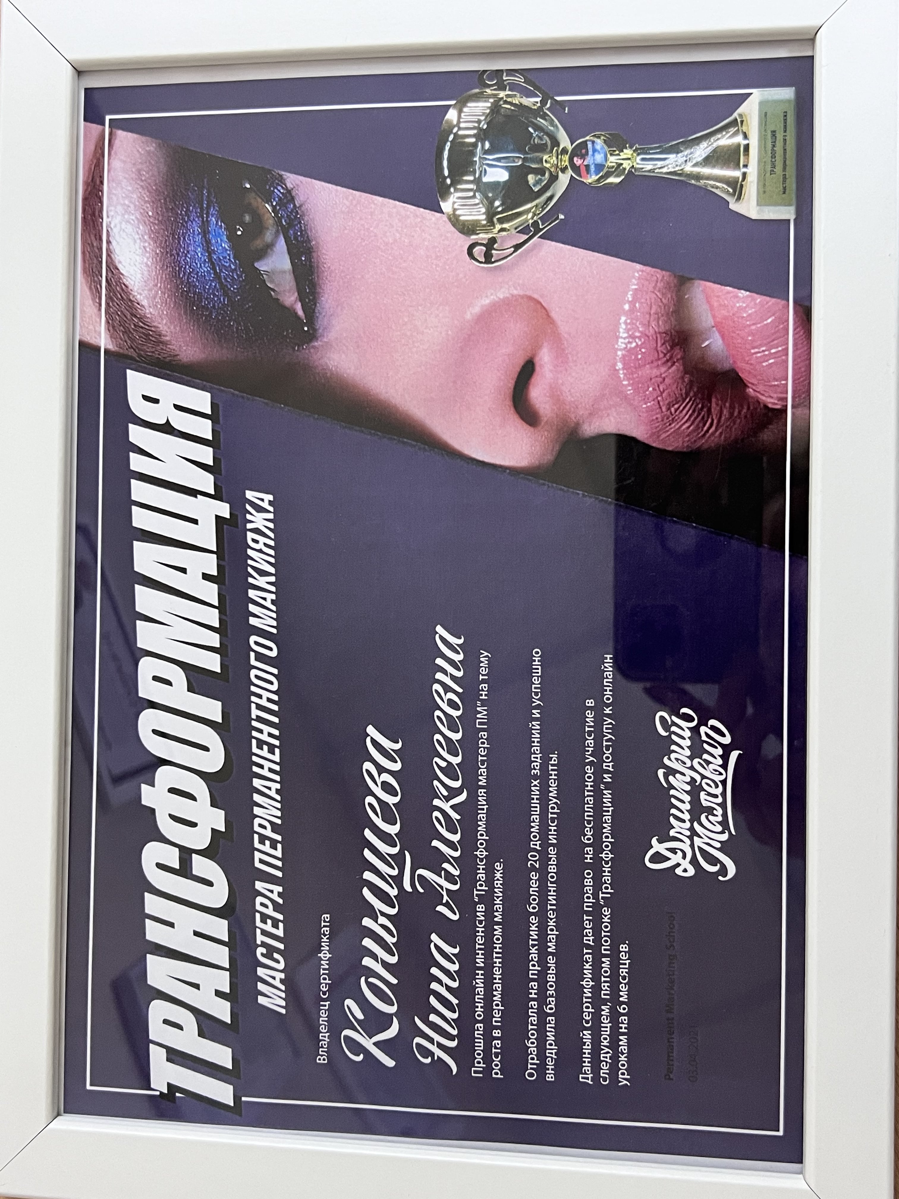 Не на словах, а на деле. Кроме большого опыта в перманентном макияже, с 2010 года Нина Конышева учитель и наставник для других мастеров. Судья международных чемпионатов и их неоднократный победитель в номинациях губ и век. Сервис в студии Нины Конышевой один из лучших в Москве.